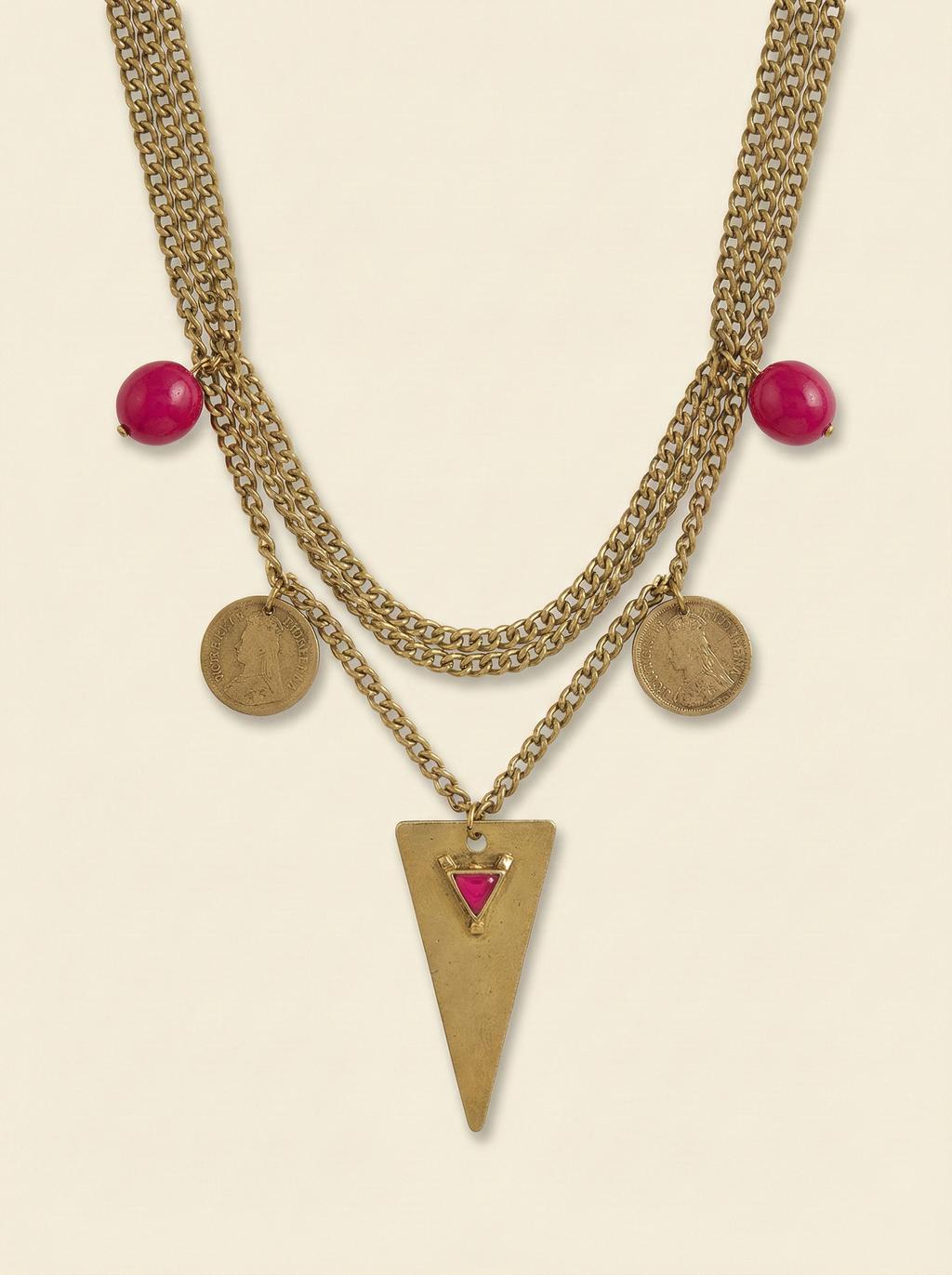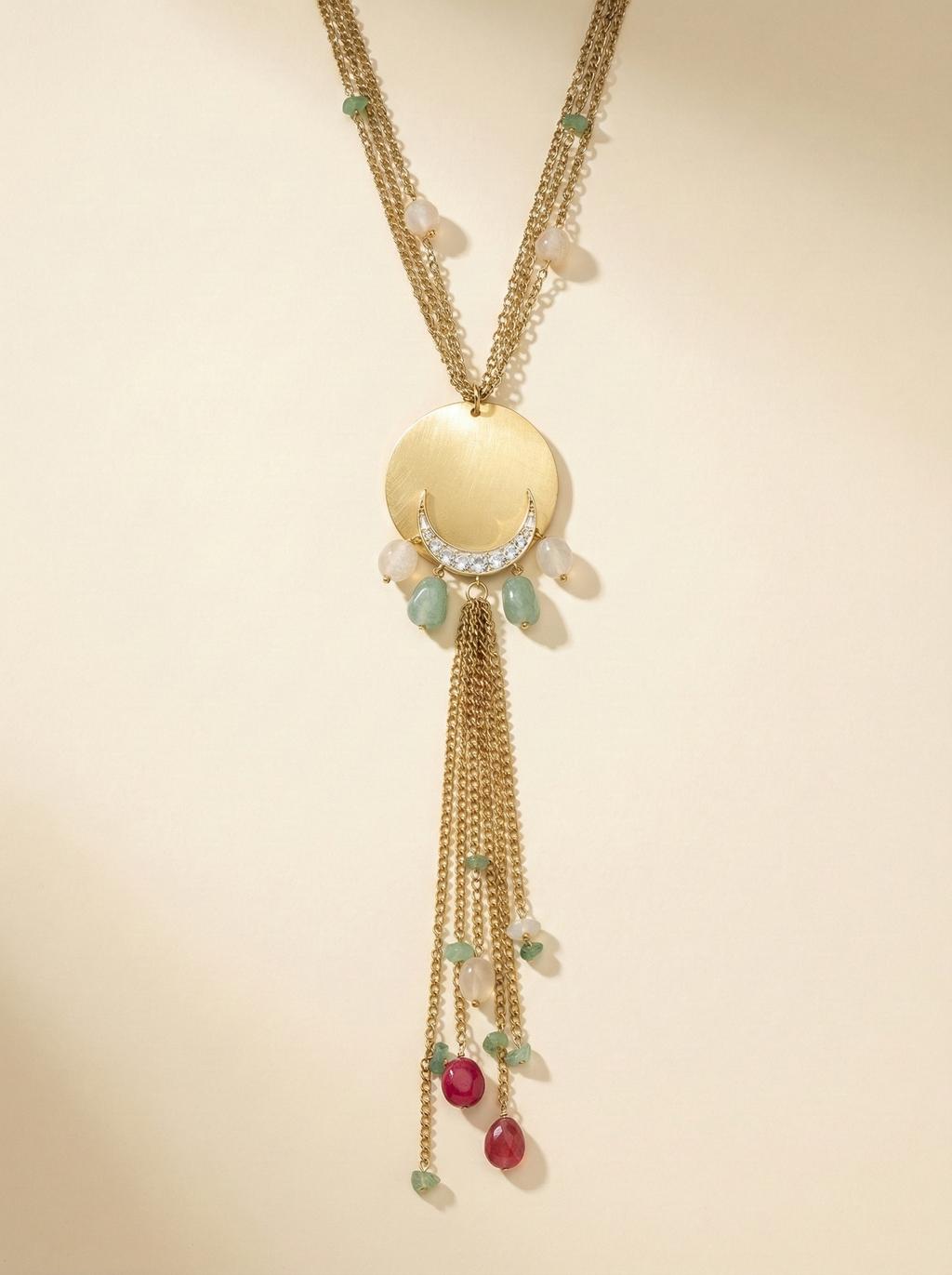 Gold Crescent and Tassel Necklace