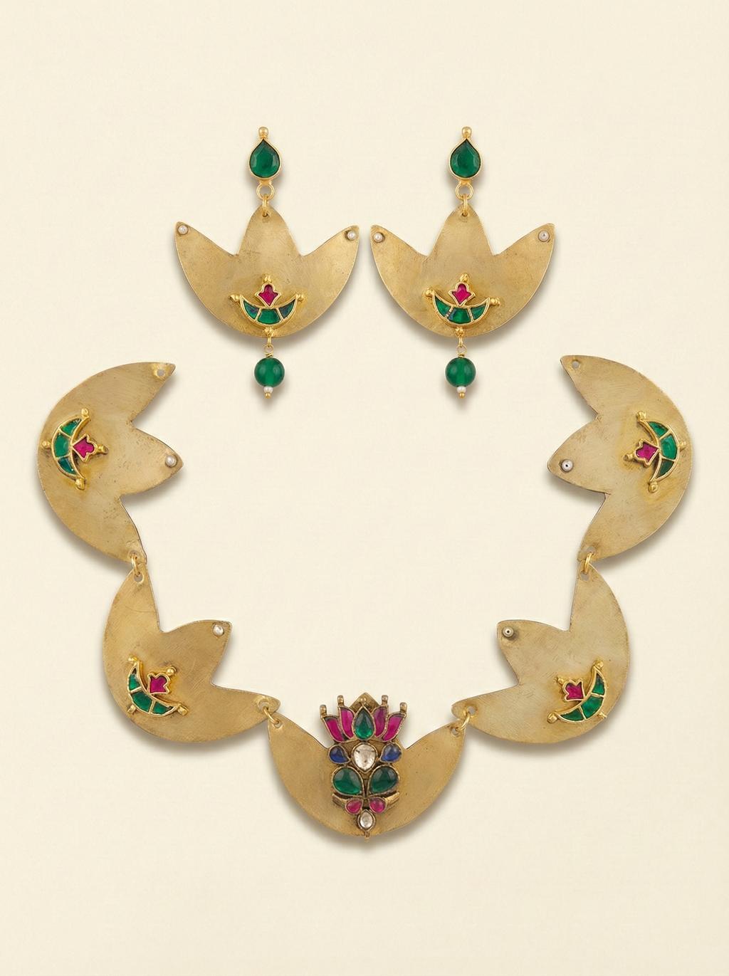 Gold Geometric Lotus Choker Set
