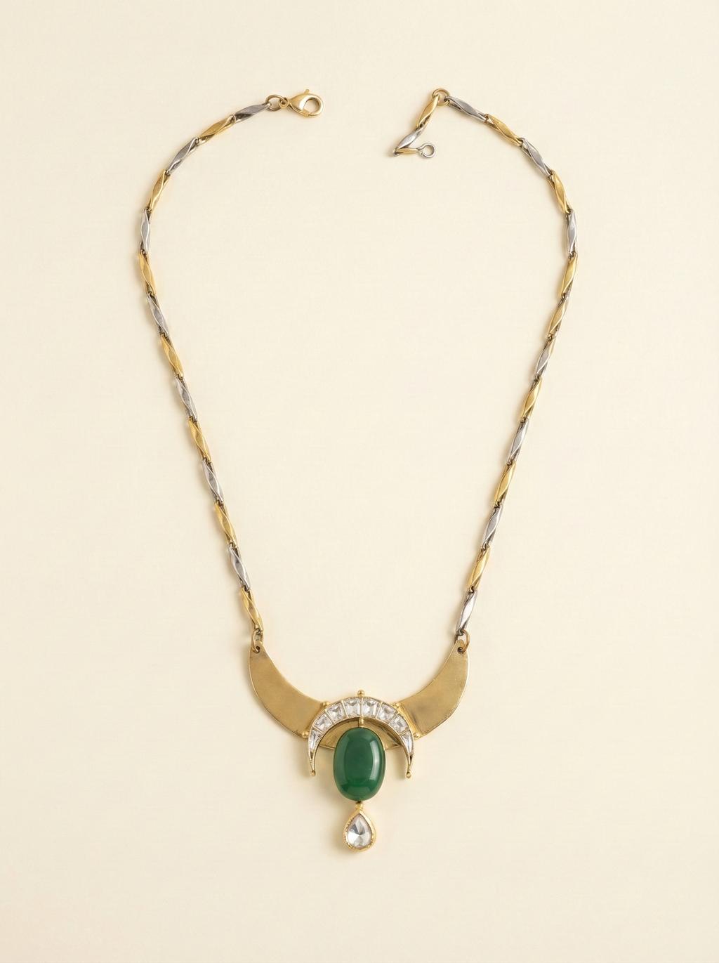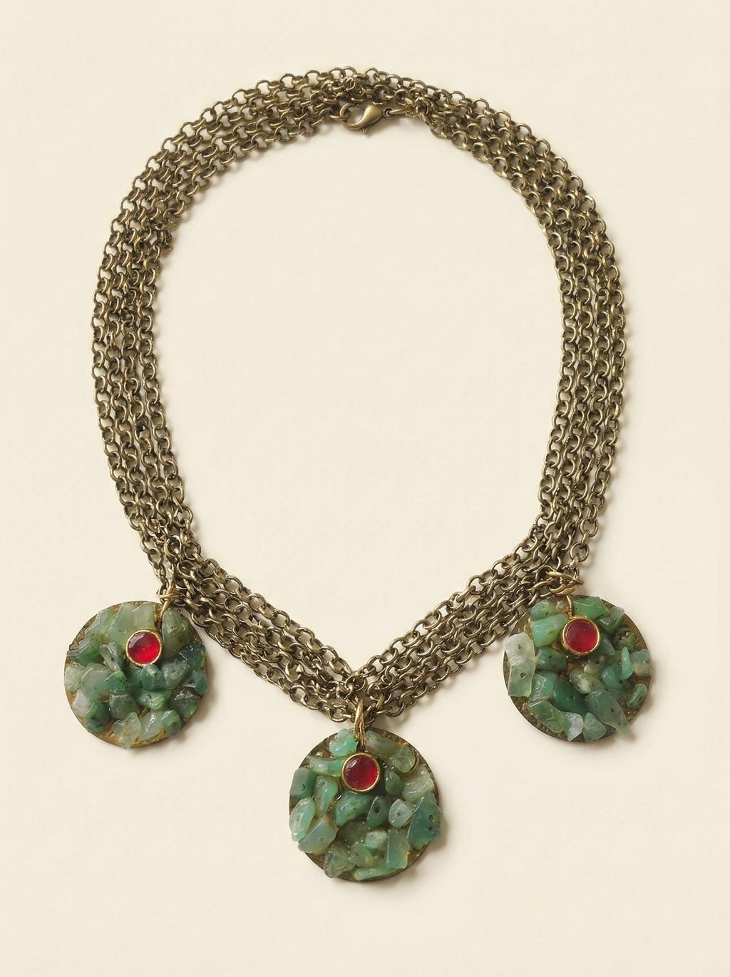 Antique Gold Green Stone Statement Necklace