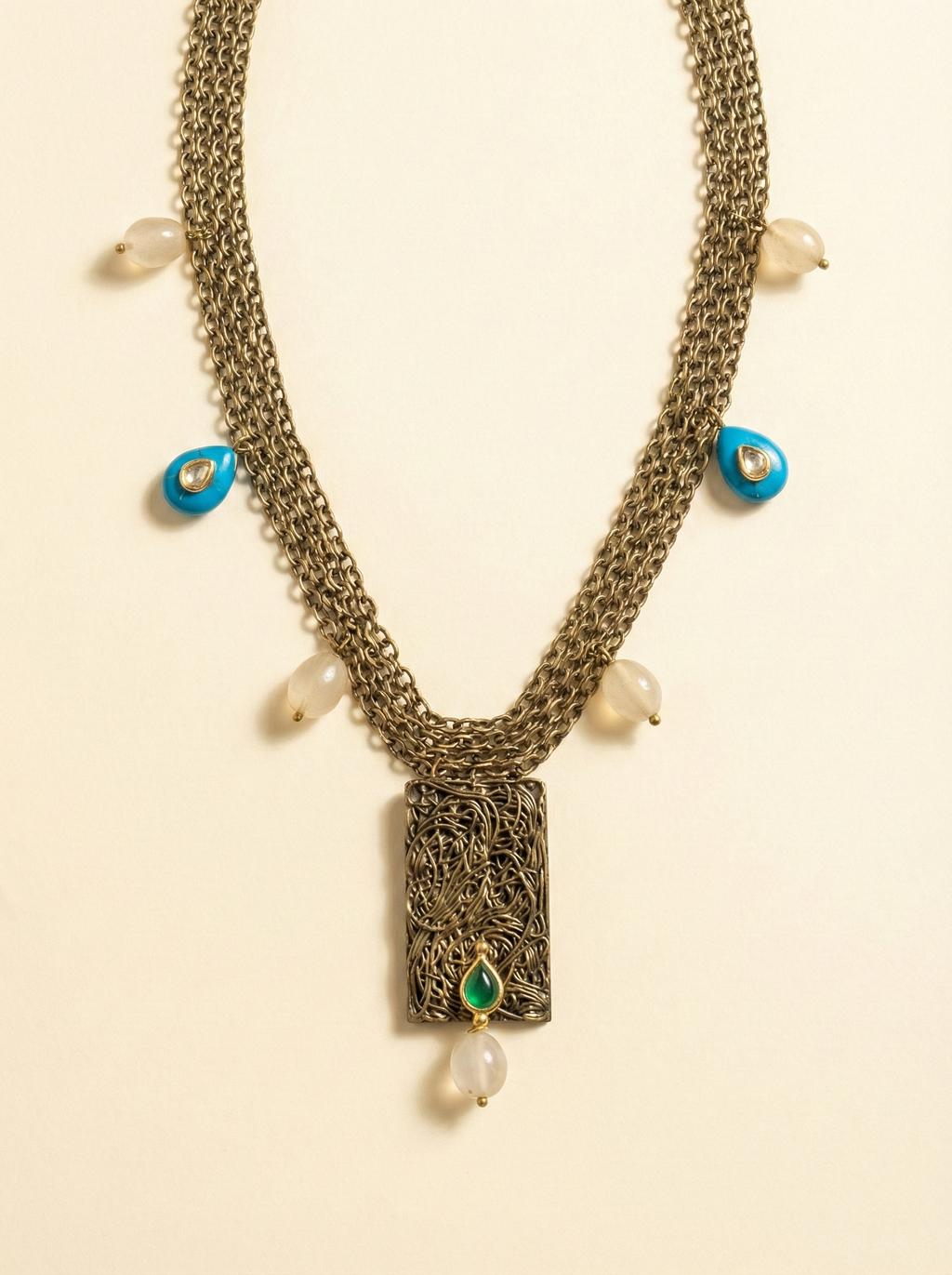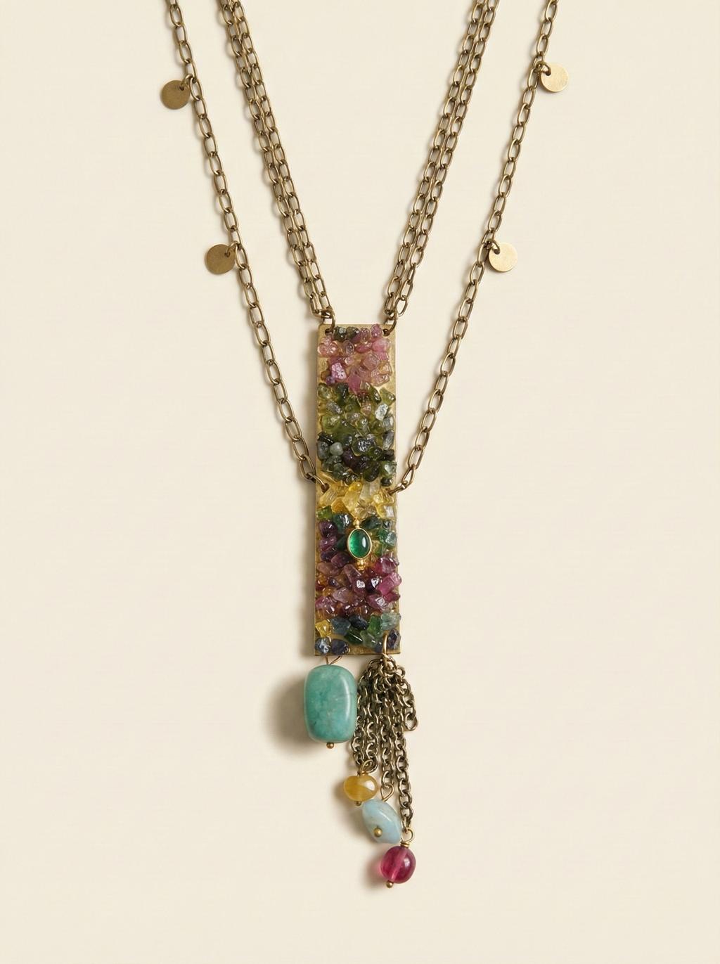 Antique Gold Multicolor Stone Mosaic Necklace