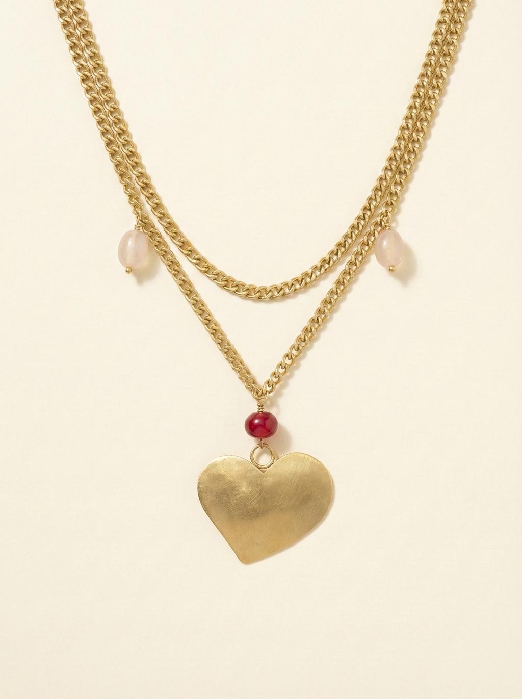 Layered Gold Heart Pendant Necklace